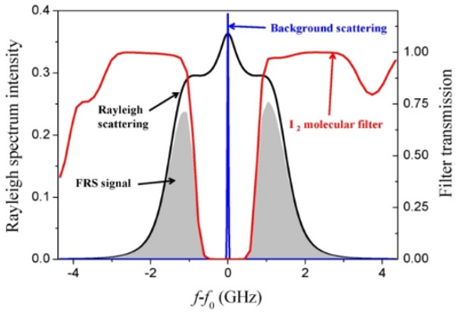 分子滤波瑞利散射(FRS)系统是一种基于瑞利散射原理以及分子滤波技术相融合的综合性试验平台。系统由窄线宽激光器、分子滤波器、弱信号探测器构成。瑞利散射信号强度与流场分子的密度成正比,信号图像可以直观反映流场的结构分布。该技术解决了传统瑞利散射信号易受背景杂散光和米散射干扰的问题,能在恶劣环境下实现高精度测量。